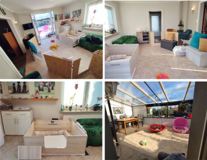 Jetzt dürfen sich die Welpen auf fast 30 qm beheizbares Spielzimmer freuen und wir sind froh und dankbar, dass alles so funktioniert hat, wie wir es geplant hatten. :-)